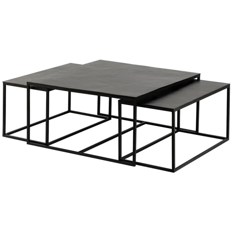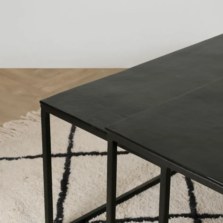 Apportez une touche moderne à votre salon avec la table basse gigogne rectangulaire (lot de 3) en aluminium et fer noir Felia.