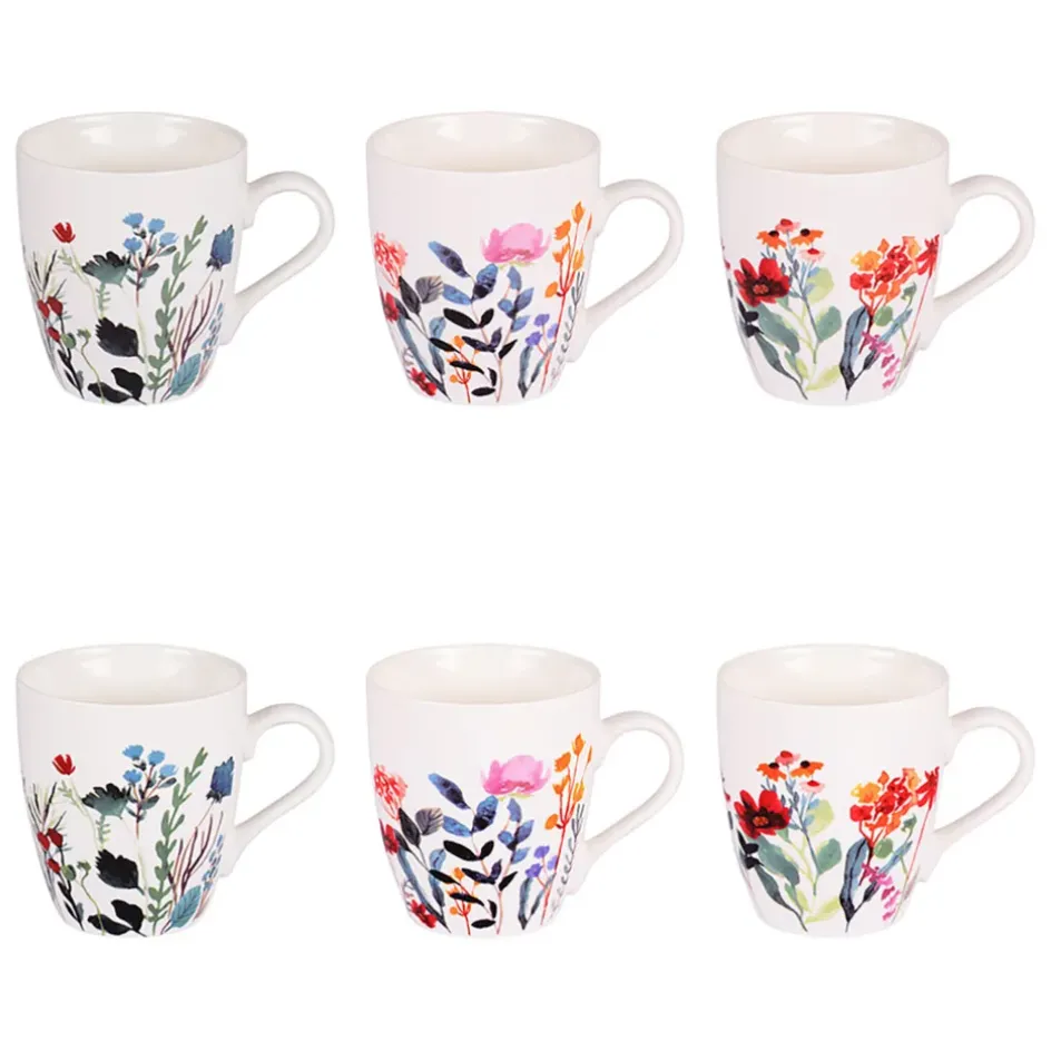Chaque tasse est ornée d’un design végétal qui évoque la douceur des champs fleuris, parfait pour égayer vos moments de convivialité.