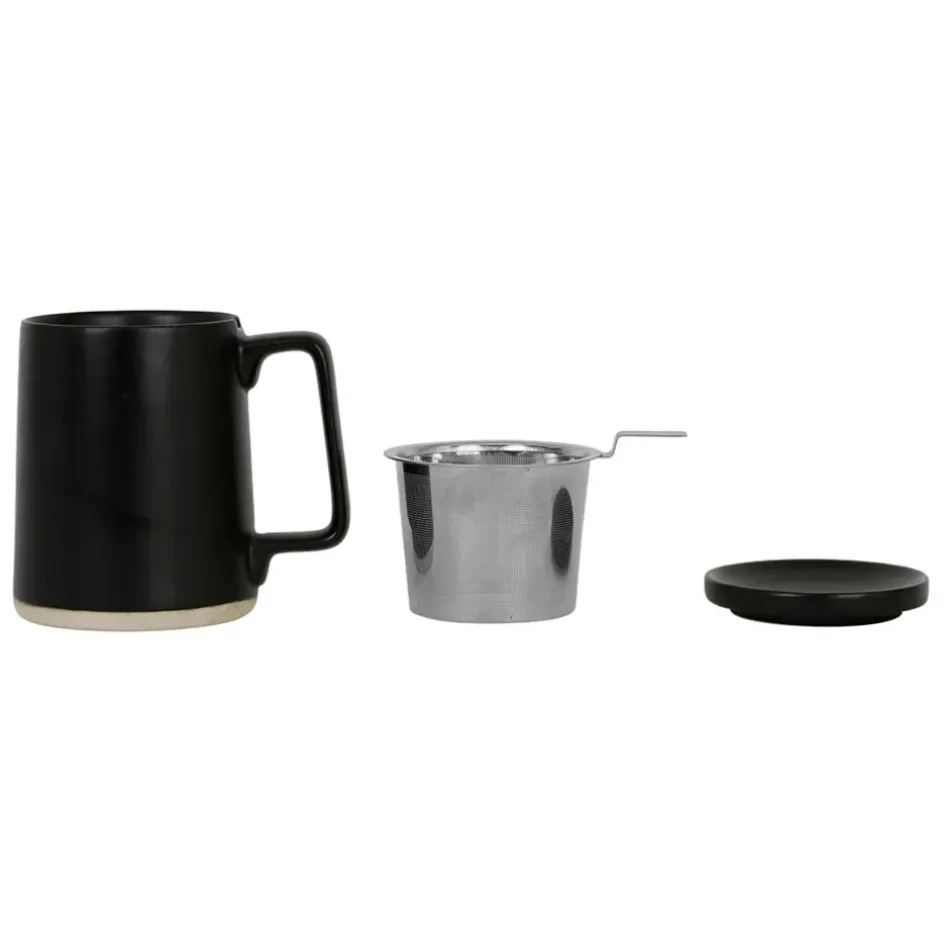 La tisanière en grès et inox noire de 50 cl est idéale pour les passionnés de thé.