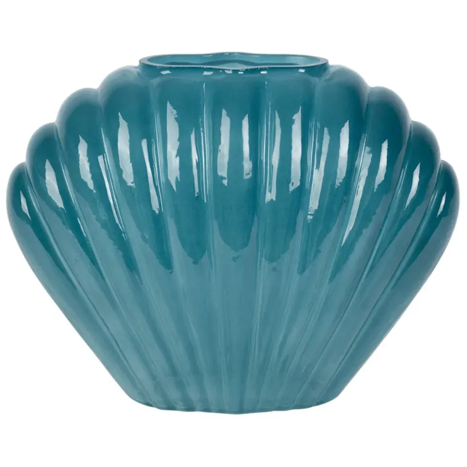 Apportez une touche marine à votre intérieur avec le vase coquillage en verre bleu Leucie.