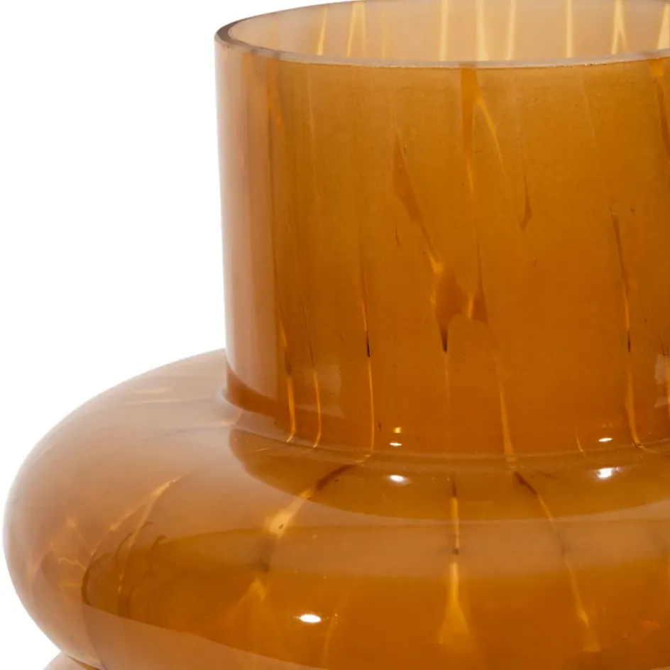 Plongez dans l’univers de la décoration intérieure avec ce magnifique vase en verre ocre, soigneusement conçu pour apporter une touche de couleur chaleureuse à votre espace.